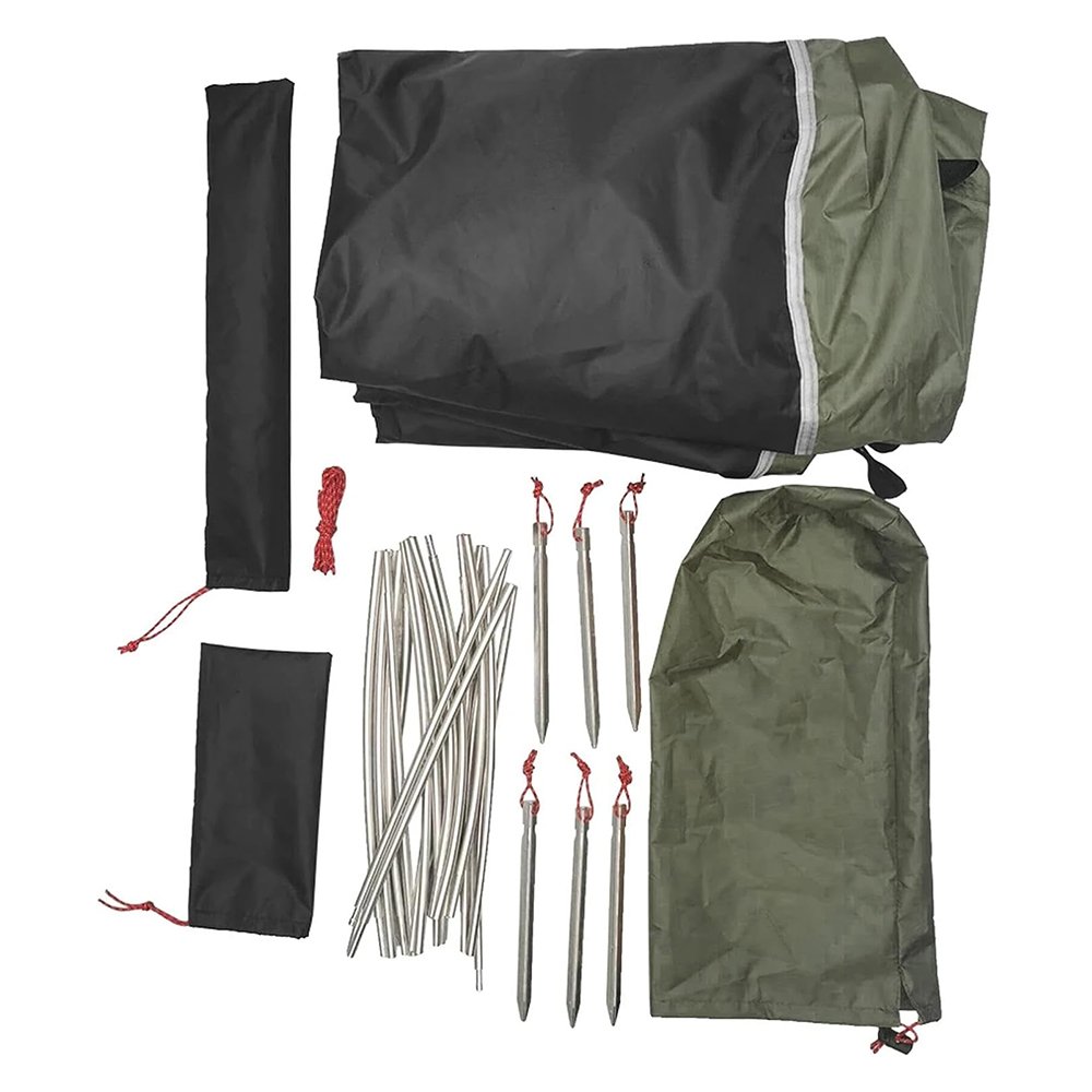 – Optimal Ventilation and Protection: Designed with mesh openings at the front and back, this tent promotes excellent airflow, helping to keep you cool and comfortable during warm weather.