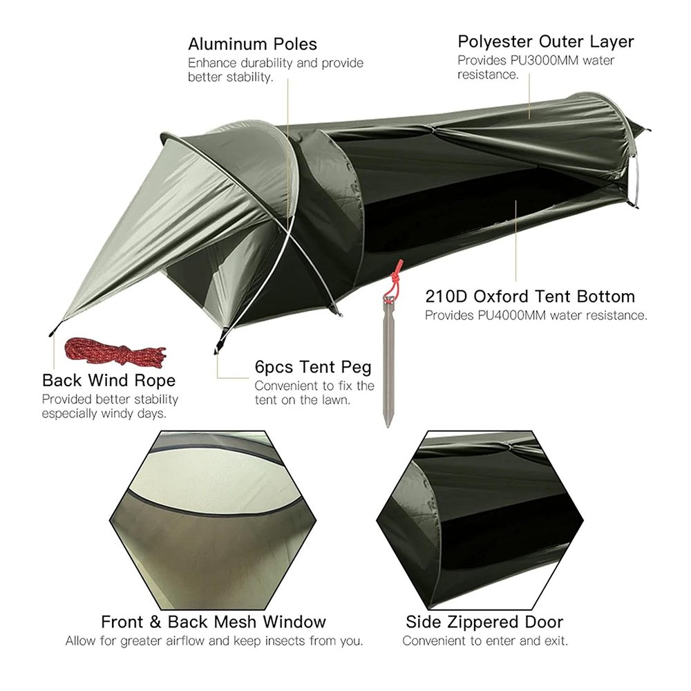 Lightweight Waterproof Camping Tent for Hiking and Outdoor Adventures, Easy Setup, 1-Person Capacity