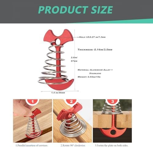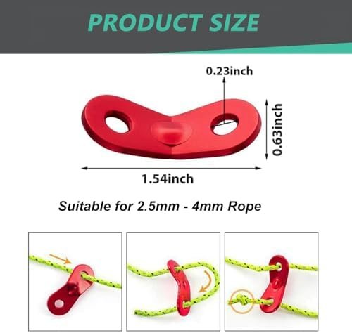 What you get: 12pcs tent rope adjusters and 6pcs deck anchor pegs with Carabiners. Red Color, enough quantity for you to use on various occasions to obtain the fun