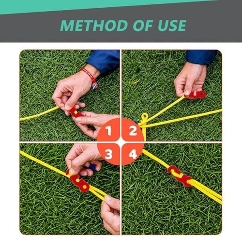 Anti-Slip & Adjustable: Comes with a spring buckle, which helps fix tent stakes and prevent the tent from collapsing or rotating due to the falling of the ground nails